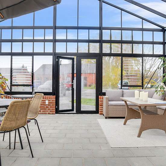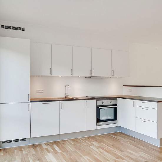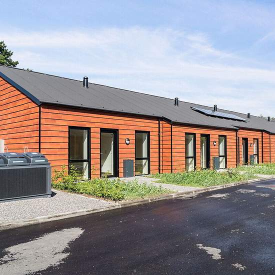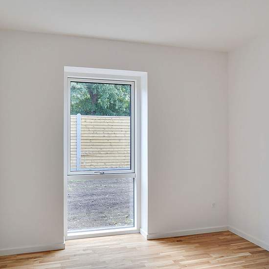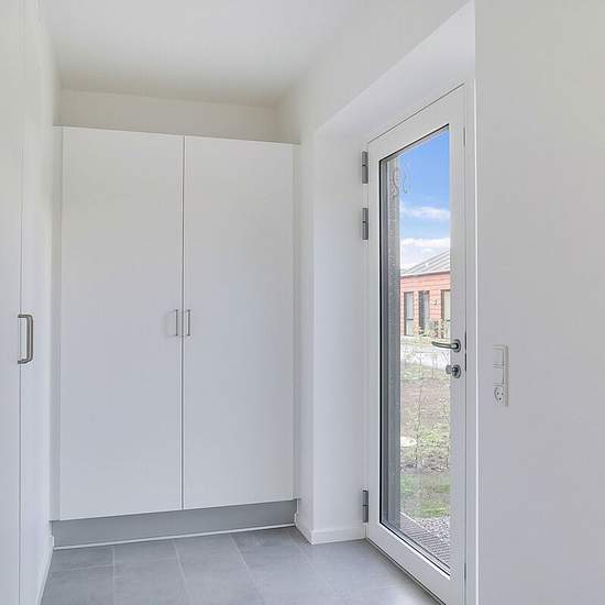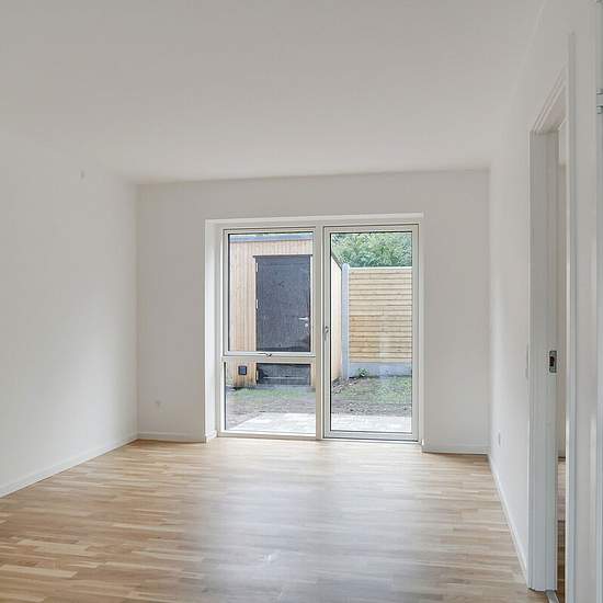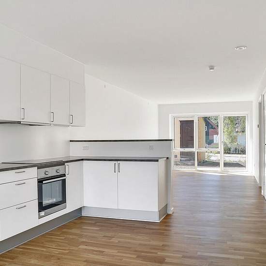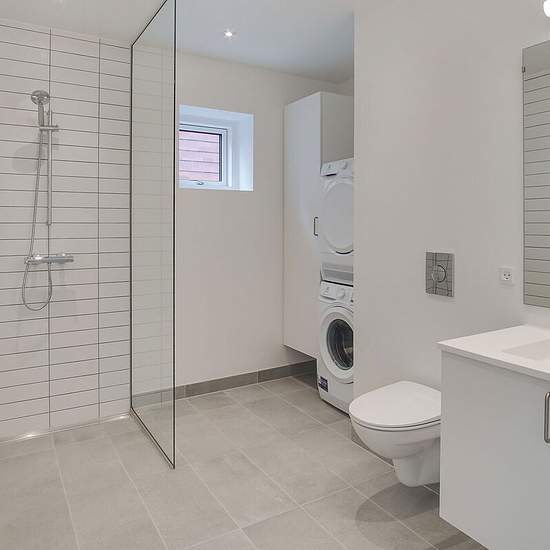 The residences are all on one level with a kitchen with space for a dining table, from which there is open access to the living room. There is underfloor heating in all rooms. You get a spacious bathroom and one or two separate bedrooms depending on the size of the dwelling. There are private outdoor areas with a tiled terrace, garden shed and small lawn attached to all ground-floor apartments and terraced houses. The apartments on the first floor have their own balcony. Appliances The residences include all major appliances, including a w...