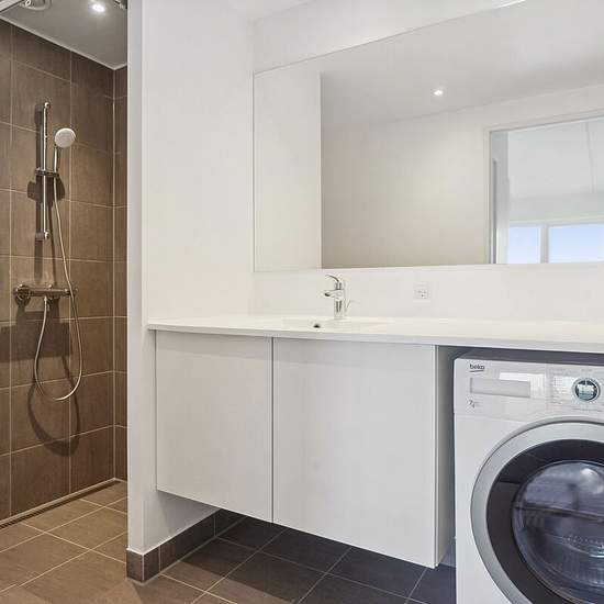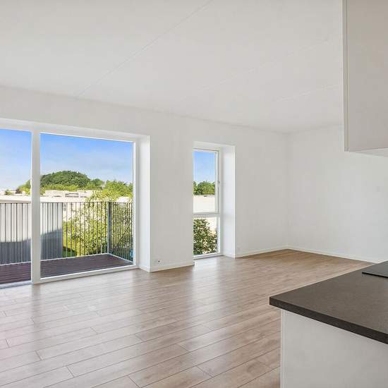 Lejlighederne kommer med forskellige planløsninger. Nogle lejligheder har en lille entré, og i andre lejligheder træder man direkte ind i køkken-alrummet. Du får et godt og funktionelt indrettet badeværelse med separat bruseniche og vaskesøjle med kombineret vaskemaskine og tørretumbler. Alt afhængig af lejlighedens størrelse er der 1 til 3 separate værelser udover køkken-alrummet. Der er depotrum tilgængeligt i næsten alle lejemål bortset fra otte boliger, hvor depotrummet er udenfor lejemålet. Alle lejlighederne i stueetagen har egen terr...