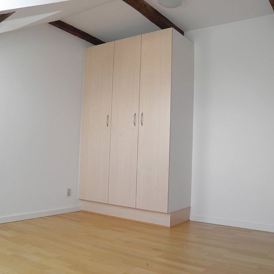 Beautiful 2-room apartment in the center of Bjerringbro, consisting of: Entrance with wardrobe, large kitchen open to the living room, nice bathroom with washing machine, and bedroom with closets. Visible beams in the ceiling. Note: Pictures and floor plan are indicative. We rent out on a first-come, first-served basis.
