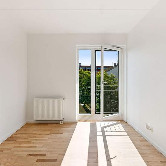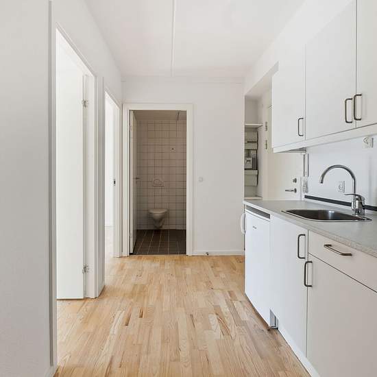 At Svanevej 17–21 in the Fuglekvarteret neighborhood in Copenhagen NV, we rent out 1- and 2-room apartments that are perfect for students, young couples, or anyone who wants to live alone. The residences are modern with large windows, a private kitchen and bathroom, and storage rooms in the basement. Appliances There is a refrigerator, freezer, oven and hob in the kitchen. There are shared laundry facilities on the ground floor. Pets Tenants can apply for permission to keep one indoor cat. See our full pet policy here. Parking You can re...