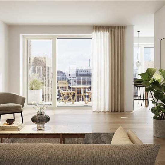 The Property This 2-room apartment in Gasværkskarreen combines modern comfort with historic architecture. The apartment is designed with a focus on light and spaciousness, where large windows and rounded corners create a unique atmosphere. The kitchen is equipped with stylish, handle-free elements of high quality and modern appliances. The bathroom is elegant and functional, featuring light tiles, a wall-mounted toilet, and fixtures in a timeless design. The apartment is perfectly suited for singles, couples, and students looking for a qua...