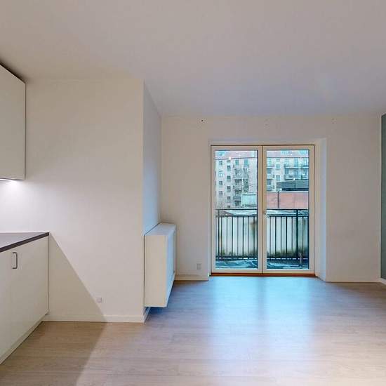 About the property Østerbro | 2-room | Balcony | Unfurnished Bright and well-laid-out 2-room apartment with balcony in Østerbro On the attractive Petersborgvej this lovely and well-laid-out 57 m² apartment is available. The home appears bright and inviting and offers a good floor plan that is perfect for both singles and couples. The apartment comprises a spacious bedroom with a large wardrobe, as well as a cozy open-plan kitchen and living area with space for both a sofa and a dining area. The large kitchen-living area is a natural gat...