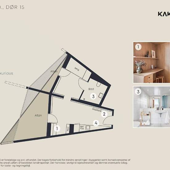 Lejlighederne er designet med fleksibilitet in mente. Møblerne er designet med flere funktioner, hvilket gør det nemt at skifte fra stue til soveværelse eller arbejdsområde til spisestue. Det er smart living, men stadig fuld af muligheder. Alle lejlighederne har et nordisk designkøkken lavet i samarbejde med det kendte, danske køkkenfirma Reform. Interiøret er specialdesignet af arkitekten, og rummer innovative løsninger, der optimerer hverdagslivet.