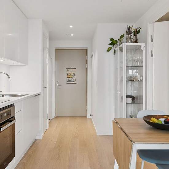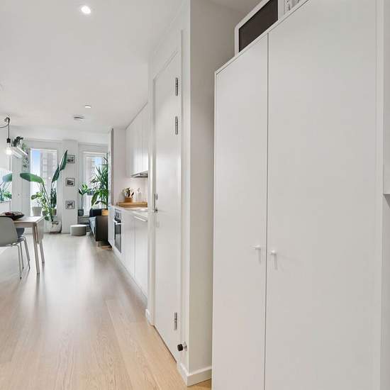 Exclusive and spacious 2-room apartment is now available for rent in the popular Carlsberg City. The apartment has an optimal layout and has used every single square meter to the fullest. From the apartment's entrance you enter the kitchen, which has space for a dining table. The kitchen is an open kitchen from HTH and the style is minimalist with a handleless design, a white countertop and appliances from Miele. From the kitchen you go to the living room, which is set back from the apartment's entrance. This provides essential depth and a c...