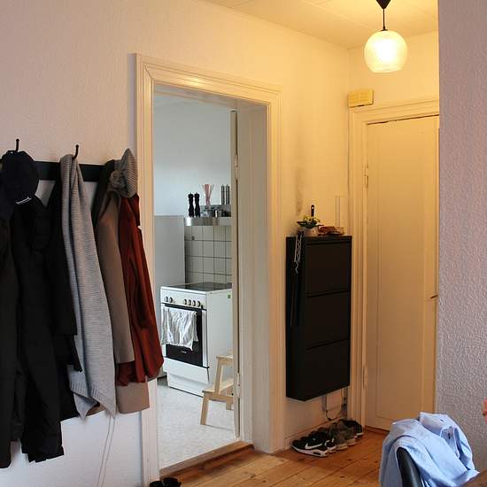 The apartment contains: Dining/living room Large kitchen with pantry Bedroom Bathroom The apartment is located near the town centre's green oasis, I.C. Møllerparken, and close to the pedestrian street, cafés, and various grocery shops. Free use of the adjoining sun courtyard. Bicycle parking in a locked bicycle cellar, where laundry facilities are also available. Note: No pets or smoking allowed.