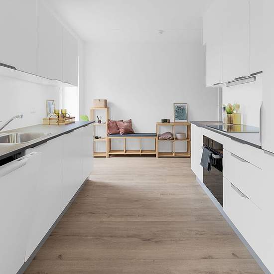 Welcome home to a lovely 2-room apartment, where every square metre has been used with care and where the light is allowed to dance freely through the rooms. Here you live in a newer building from 2022, high up on the 3rd floor, with a floor plan that invites calm, togetherness and small everyday rituals. A kitchen-dining area that brings everyday life together The heart of the apartment is the open kitchen-dining area, where kitchen, dining space and living room flow naturally together. The sleek kitchen is finished in light materials and...