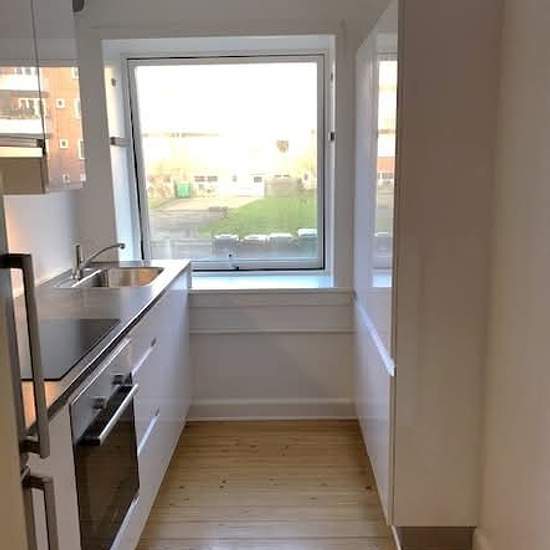 RENTED... 2-room apartment of 60 m2 with a good location just outside the ramparts (Falkevej), 5 min. walk from the town centre and the train station. The building has recently had new windows installed all the way around. The rental unit is laid out with a new kitchen, large living room, large bedroom, separate toilet and bathroom, and entrance hall. Info about the rental: * 60 m2 * 2-room on the ground floor (raised ground-floor apartment) * Good location between the town centre and the train station * Shared backyard * Shared laundry ...