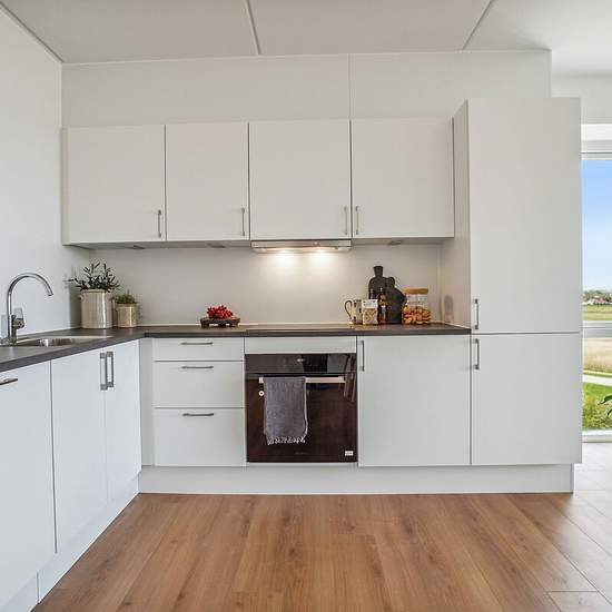 Note: It is a requirement that tenants of this rental are 55+ years old and have no children living at home. All apartments feature a good layout and a private balcony or terrace. When you step into the apartments, you are met by a generous entrance hall that leads you on to the apartment’s bathroom with laundry facilities. From the entrance you enter the kitchen-living area, which has direct access to a private balcony — which, depending on its location, may have a fjord view. Each apartment has either one or two rooms which, depending on...
