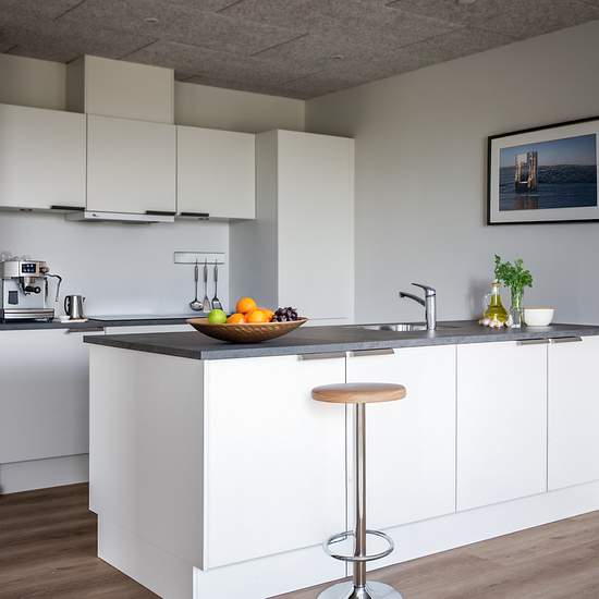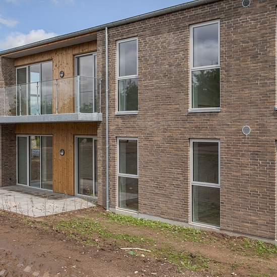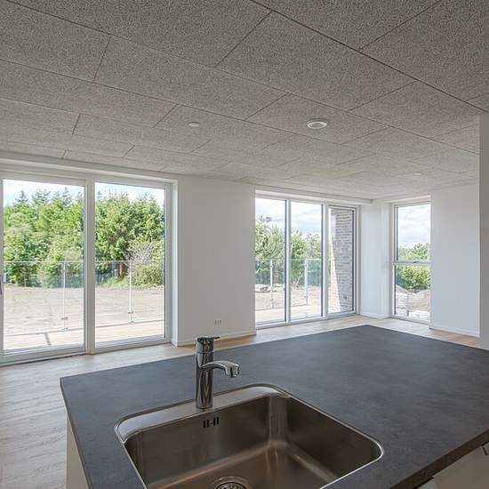 **Description** Welcome to Housing Type A 81m² – a modern and functional home focused on comfort. As you enter this residence, you are greeted by an inviting entrance. To the left, you will find a practical coat rack for outerwear, and to the right, the door leads into the utility room. Here, there is ample workspace with a countertop, two base cabinets (Svane), and space for both a washing machine and a dryer – ideal for everyday needs. The apartment's bathroom is also connected to the entrance. The bathroom is elegantly designed with a ...