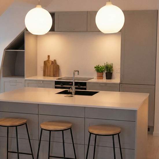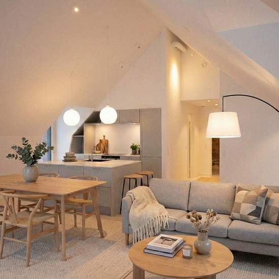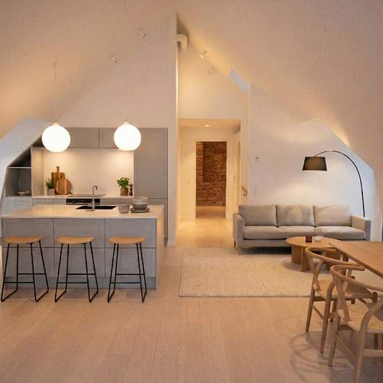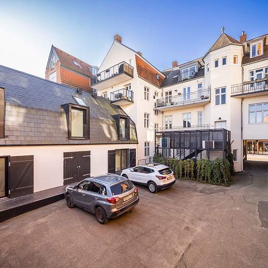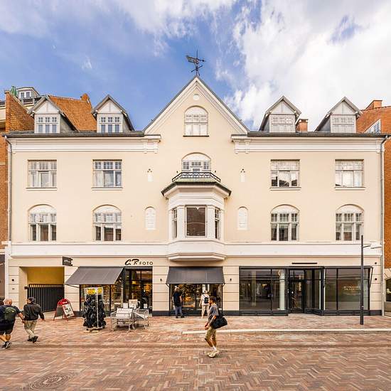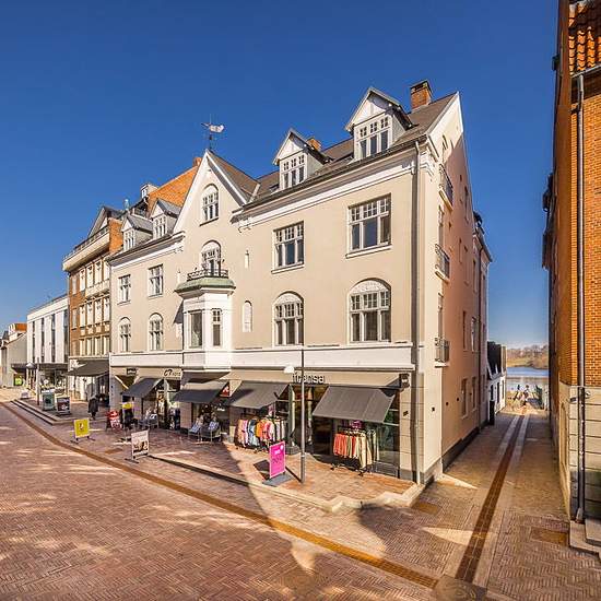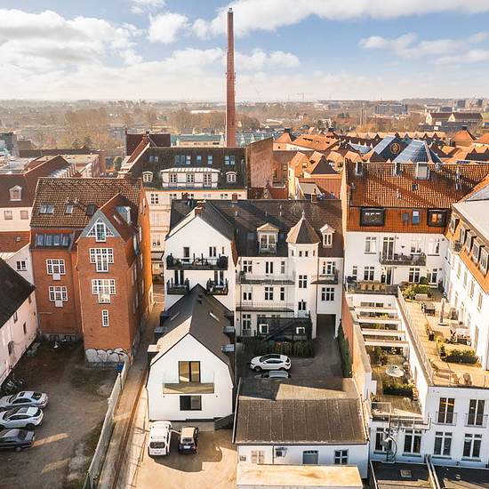 Welcome to this inviting apartment on the attractive Slotsgade – directly overlooking the idyllic Slotssø and in the very heart of Hillerød. Here you live with the city's atmosphere right outside your door and nature as your nearest neighbor. The apartment offers 112 well-utilized square meters and appears bright, modern and ready to move into. The natural focal point of the home is the large open-plan kitchen and dining area, where a vaulted ceiling and skylights create an impressive sense of space and a fantastic influx of light. The kitc...