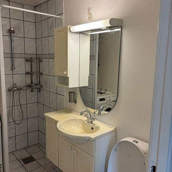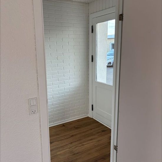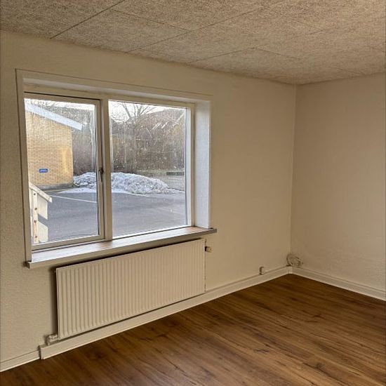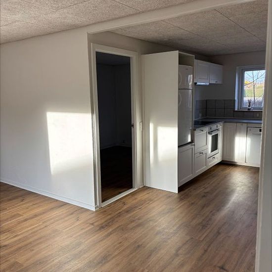 Cozy 2-room ground floor apartment for rent in Hjallerup The apartment is newly renovated with new floors and troldtekt ceilings, as well as a new kitchen. Includes: – small entrance – living room with wooden floor with direct access to open kitchen with dishwasher. – 1 bedroom – toilet/bathroom with washing machine – small open space in front of the bathroom for storage/closet space, etc. – access to large shared garden with lawn The apartment is centrally located in Hjallerup, a 2-minute walk from shopping options and bus connections. ...