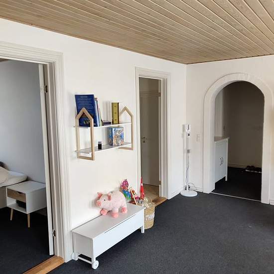 Available for move-in from April 1, 2025. Lovely and cozy ground-floor apartment, centrally located in downtown Hjørring (close to the pedestrian street, P. Nørkjærs Plads, etc.). 70 m², two-room apartment consisting of a living room, bedroom, kitchen, bathroom, and entryway. There is a nice enclosed backyard belonging to the building with a terrace available for use. The garden also has a shed for storing bicycles, a grill, etc. There are several good parking options close to the apartment and shopping is within walking distance. Rent is DK...
