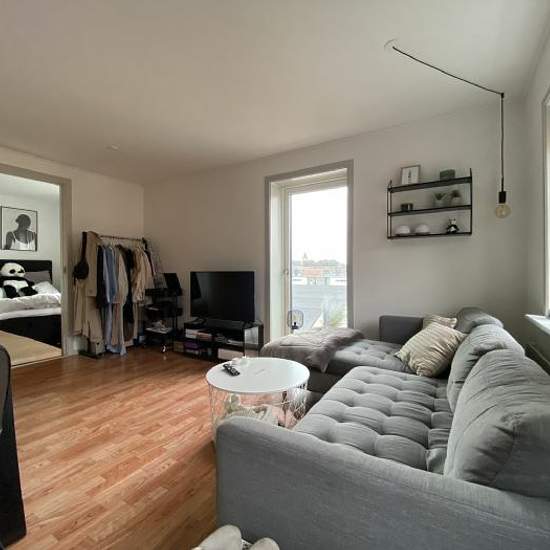 Charming and well-appointed beautiful apartment. Centrally located in the heart of Hobro and in the district heating area. Lovely bright living room with beautiful wooden floors. Spacious bathroom area with light tiles. Cozy kitchen area with great natural light. Water view of Mariager Fjord and a view over the city. Well-arranged bedroom. Access to a shared laundry room. Connection for cable TV/internet. Private storage room belonging to the rental unit. Private parking area right by the rental unit. Newly renovated rental unit with moderni...