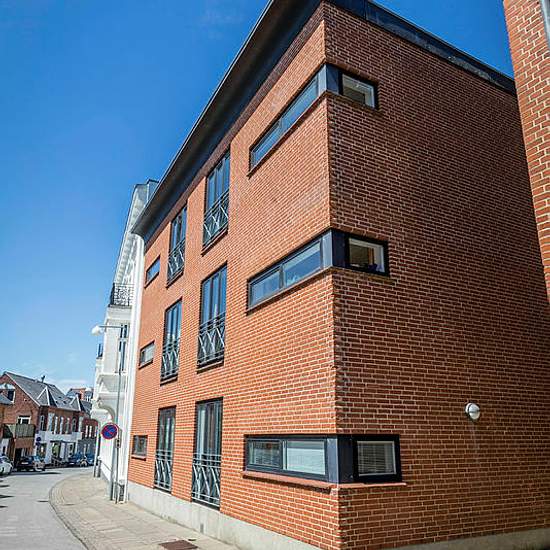 The complex consists of 18 rental units in a multi-storey building with an elevator and is located in the heart of Holstebro right by the pedestrian street, a short distance from the station, the music theatre, Holstebro Museum, etc. There are parking spaces in the courtyard, where an electric charging station from Clever for 2 cars has also been installed. The homes are reserved for seniors without children living at home. The homes are elderly- and disability-friendly. Pets are not allowed. Pets in accordance with the house rules in f...