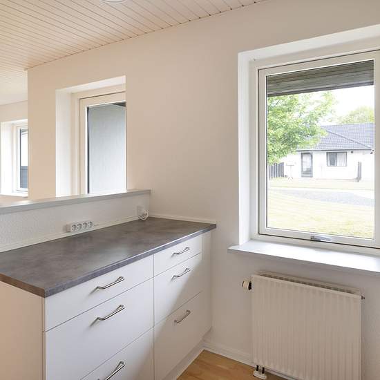In peaceful and scenic surroundings, Skolevænget is located in Tvis. Here, you will find a lovely home of 65.3 m² – designed with a delightful open floor plan, where the kitchen-dining area and living room are in open extension of each other. From the living room, there is direct access to your own terrace. The home also features a spacious bedroom with a wall of closets. Adjacent to the bedroom is the bathroom. Your arrival to the home is through the entrance hall. Additionally, there is a practical storage shed by the main entrance for sto...