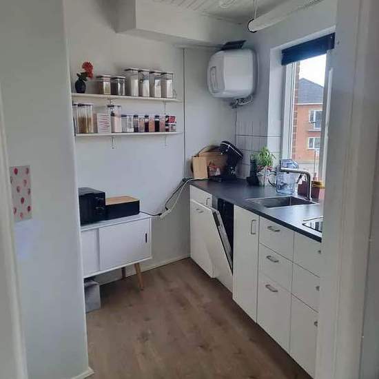 Move-in January 1st — or as soon as possible thereafter. The apartment is located on Skivevej with access to a shared laundry cellar, garden area and its own roof terrace. It appears neat and well maintained. About the apartment - 57 m², 2-room - Entrance, living room, kitchen, bedroom and bathroom - Access to shared laundry cellar and a cozy garden area - Private roof terrace - Heated by a heat pump. Financials - Rent: 4,795 kr./month - Advance payment for water: 150 kr./month - Electricity is billed directly by the utility company - Deposi...