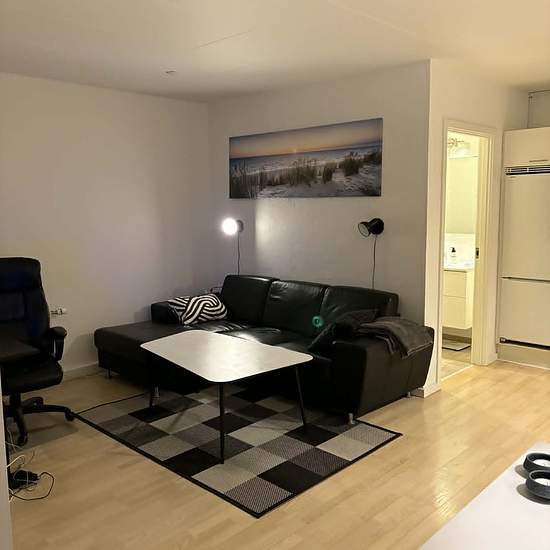Beautiful 2-room apartment in the heart of Horsens This apartment offers a large and spacious open-plan kitchen/living area, with plenty of room for both a dining table and a sitting area. The kitchen is neat and modern and is fully equipped with fridge/freezer, stove, extractor hood, dishwasher and good cupboard space. The bedroom is cozy and spacious with room for both a bed and storage. The bathroom is practically laid out with a separate shower and plenty of space. The apartment is ideal for anyone looking for a functional, well-arranged...