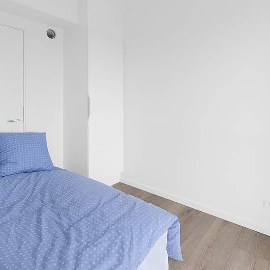 Lys toværelses lejlighed med køkken og stue i åben forbindelse, soveværelse, bad samt stor entré. Lejligheden har egen altan/terrasse. Til boligen hører eget skur.