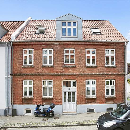 Moderniseret med køkken, bad,vinduer mm.Dørtelefon Stor vestvendt altan. Hyggeligt haveanlæg. Attraktivt beliggende i gammelt kvarter med sjæl, 10 min. gang til gågaden og centrum. Tilhørende depotrum. Lejligheden ligger i en ældre præsentabel ejendom, der løbende er moderniseret. Trappevask, vask/tørretumbler og kold vand er inkluderet i huslejen. Husdyr tilladt under særlige vilkår, forhør nærmere på kontoret.