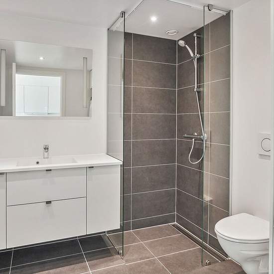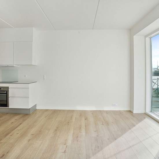 Lejlighederne varierer i størrelse fra 1 til 5-værelser. Du træder ind i entréen, hvorfra der er adgang til boligens køkken-alrum i direkte forbindelse med stuen. Fra køkken-alrummet har størstedelen af lejlighederne udgang til en altan eller terrasse, og de sydvendte gavllejligheder har endda store udeområder med udsigt over vandet. Der er anvendt store vinduespartier på tværs af ejendommen, som skaber optimalt lysindfald i lejlighederne og byder den unikke udsigt ind i boligerne. Fra køkken-alrummet er der adgang til boligens separate være...