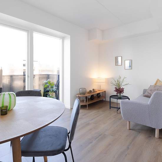 Bo i en praktisk og hyggelig toværelses lejlighed, der byder på en gennemtænkt indretning og en skøn terrasse. Til boligen hører eget skur. Obs: denne bolig er spejlvendt ift. plantegning.