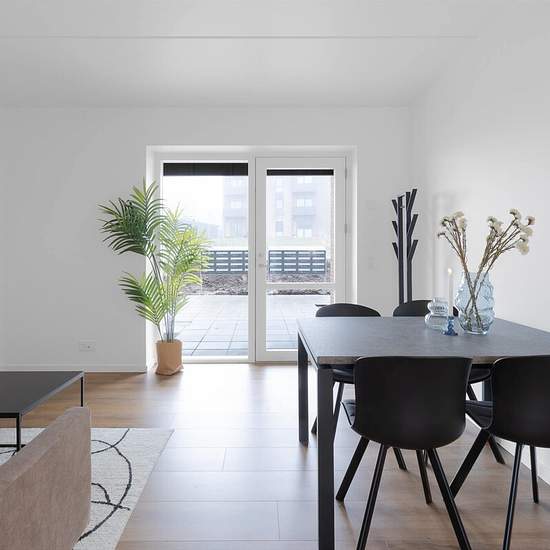 Discover a compact two-room rental property in Horsens that is ideal for students. Enjoy renting a modern two-room apartment, just a short bike ride from the city center. The unit comes with its own shed. Note: this unit is mirrored compared to the floor plan.