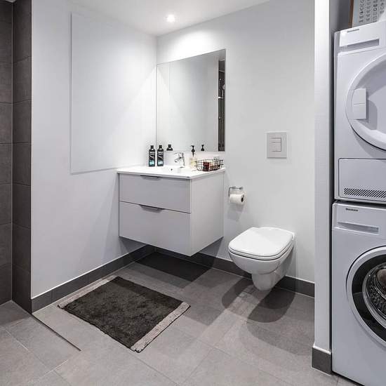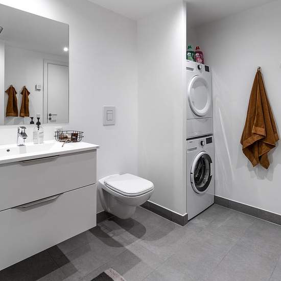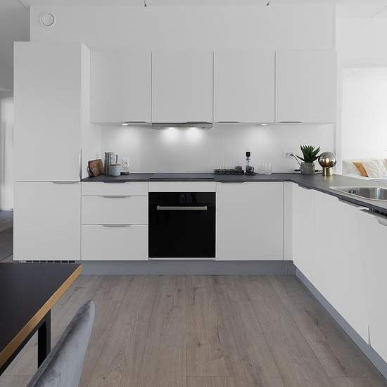 New two-room apartment with a large open-plan kitchen/living area and all major appliances. The apartment has its own balcony. The apartment comes with its own shed.