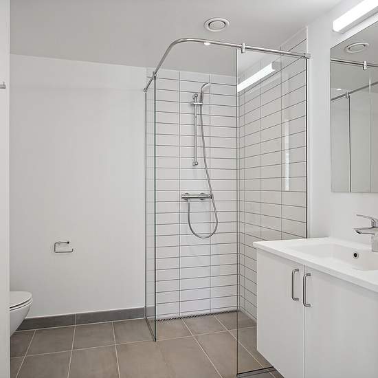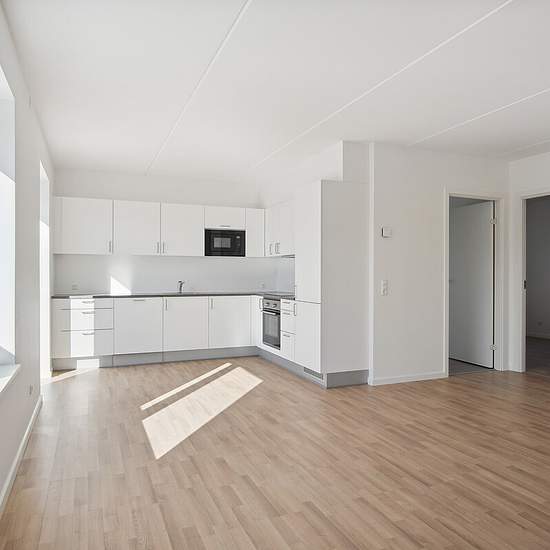 Beautiful and bright 2-room apartment Spacious, modern apartment with a large, bright open-plan kitchen-living area. The apartment has one bedroom with built-in wardrobes and an entrance hall with extra storage space. The kitchen is equipped with a fridge-freezer, ceramic hob, extractor hood, built-in oven and dishwasher. The bathroom is bright and has a shower cubicle and a stacked washer-dryer. The buildings are surrounded by large, green communal areas with pleasant paths and planting. There are shared greenhouses, raised beds and a fir...