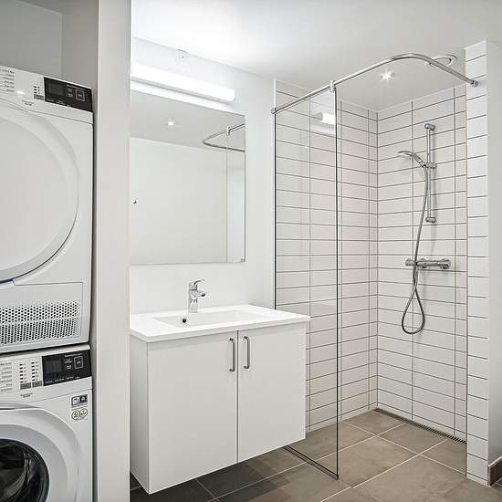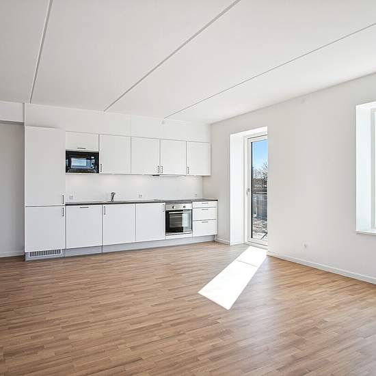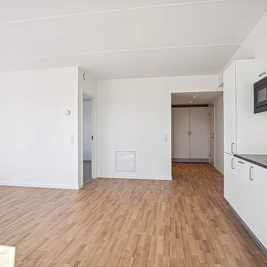 Large and modern 2-room apartment Lovely modern apartment offering a large, bright open-plan kitchen/living area, a well-arranged bedroom with large built-in wardrobes and an entrance hall with built-in storage. The kitchen includes a fridge-freezer, ceramic hob, extractor hood, built-in oven and dishwasher. The bathroom is bright with a shower niche and a stacked washer/dryer. The buildings are surrounded by large, green communal areas with pleasant paths and landscaping. There are communal greenhouses, raised beds and a fire pit that the ...