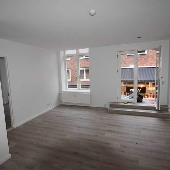 Newly renovated and refurbished apartment with a large open kitchen and living room. The apartment includes all high-quality major appliances. Entrance hall with access to a bathroom with a stacked washer-dryer and further access to the kitchen and living room. From the living room there is access to a bedroom. Balcony facing the courtyard and a small French balcony facing the pedestrian street. For the discerning tenant who wants a perfect location in the city center. Free parking is also included.
