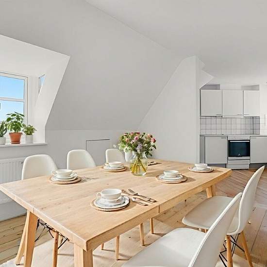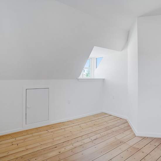 Welcome to an inviting 2-room apartment of 48 m2, located on the top floor of a classic, well-maintained building with a red tiled roof and rendered facades. Here you get a bright and pleasant home with cosy sloping walls, handsome plank floors and a calm expression – ideal for a single person or a couple who want a manageable base with green surroundings right outside. The apartment offers an entrance hall with access to all rooms. The living area consists of a living room in open connection with a well-appointed, white kitchen. The kitche...
