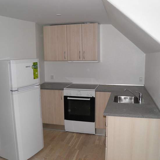 About the residence: Løgstrup: Beautifully renovated 2-room apartment, consisting of a new kitchen combined with the living room, a bedroom with new wardrobes, and a bathroom with a washing machine. Beautiful wooden floors throughout. Please note we do not allow pets. It is possible to apply for permission to keep an indoor cat. All our apartments are rented on a first-come, first-served basis.