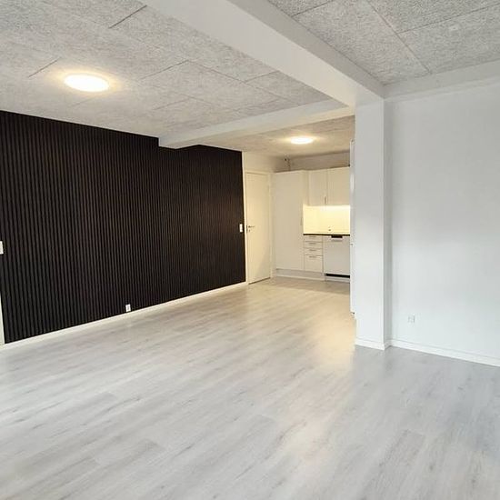 Completely renovated 3-room apartment of 72 m² on the ground floor in Løsning – ready for takeover as soon as possible. The apartment offers a spacious kitchen-living room in open connection with the living room, creating a natural gathering place with plenty of space for everyday life and guests. The new HTH kitchen is stylish and functionally designed with a large fridge/freezer, built-in oven, induction hob, dishwasher, as well as good cabinet and storage space. The residence also includes a large bedroom and an additional room, perfect f...