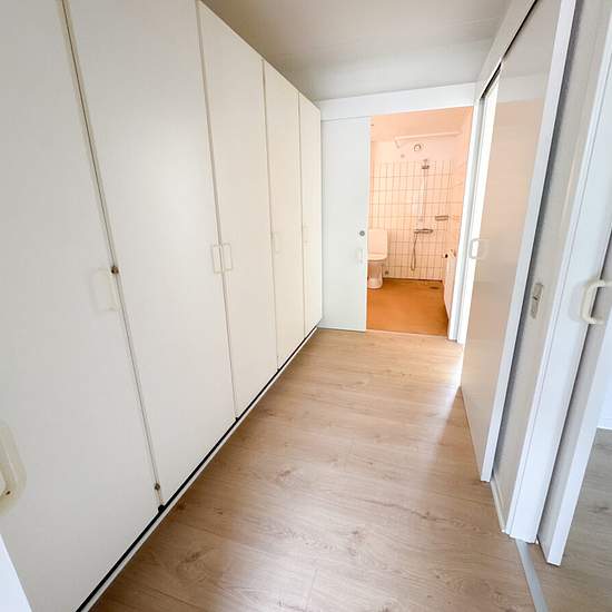 Velkommen til denne velindrettede og rummelige lejlighed, der byder på en funktionel planløsning og moderne komfort. Allerede i entréen mødes du af god skabsplads, som giver praktiske opbevaringsmuligheder og en ryddelig velkomst. Fra entréen er der adgang til lejlighedens soveværelse, der har indbygget skab og plads til en stor seng – et perfekt rum til ro og afslapning. For enden af entréen finder du det rummelige badeværelse, hvor der er gjort klar til installation af vaskemaskine, hvilket giver ekstra bekvemmelighed i hverdagen. Stuen ...