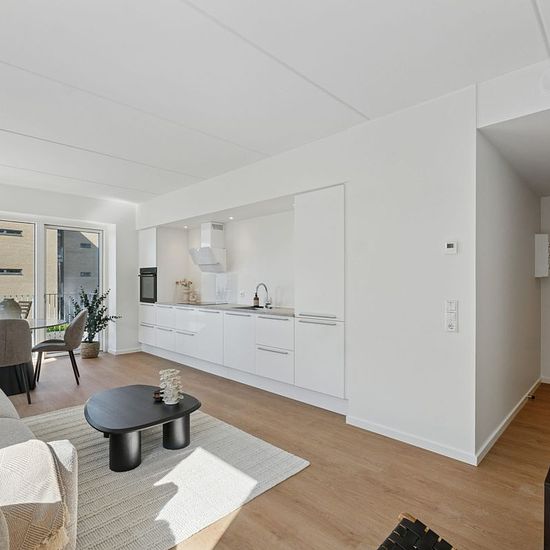Velkommen til Sølyst – en perfekt ramme med moderne komfort. Lejlighederne henvender sig til unge par, singler eller seniorer. Materialerne afspejler i høj grad tiden, og der er kvalitet og en flot rød tråd over hele linjen – så er det bare op til dig at sætte dit præg med din personlige indretning. Alle boliger beriges af et åbent opholdsmiljø, og det er herfra, altanen tilgås. Om du får glæde af morgen- eller aftensolen, så er det bare om at komme ud og nyde det eksklusive uderum, der giver plads til loungesættet og en grill. Denne lejlig...