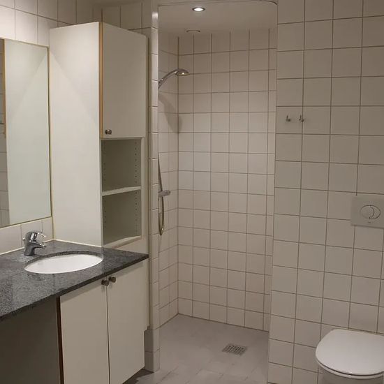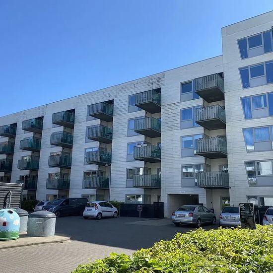 Laurits Hauges Vej was built in 2011 with 47 residences distributed over 2- and 3-room low-energy apartments. Constructed as a 5- and 6-story north/south-facing residential block. The property has an elevator. Parking spaces are available for rent. All apartments have a west-facing balcony or terrace. Kitchen: Cabinet doors in white laminate with black-stained wood edging. Countertop in dark laminate. Bedroom: Wardrobe with sliding doors in a light color. Bathroom: Sanitary fixtures in a light color. Gray-marbled granite countertop with sink...