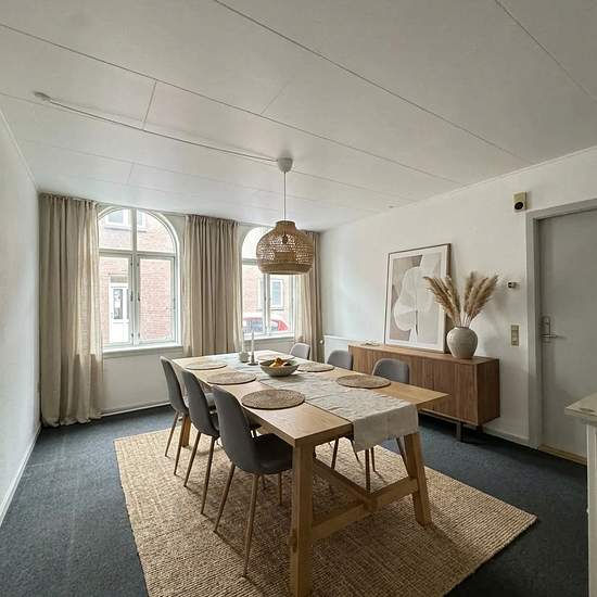 Velkommen til en indbydende og funktionel lejlighed på 50 m2 med klassiske detaljer og et lyst, roligt udtryk. Boligen byder på et praktisk spisekøkken med hvide elementer, gode skabe, åbne hylder og plads til et lille spisebord. Her er fritstående komfur/ovn, køle-/fryseskab og en behagelig, slidstærk flisebelægning, der gør hverdagen nem. Fra køkkenet er der adgang til en rummelig stue, hvor de smukke buede vinduer giver et behageligt lysindfald og karakter til rummet. Her er god plads til både sofa- og spiseafdeling, så indretningen kan ...