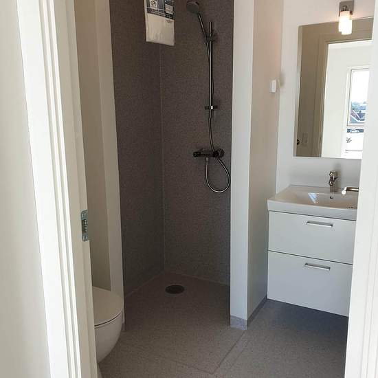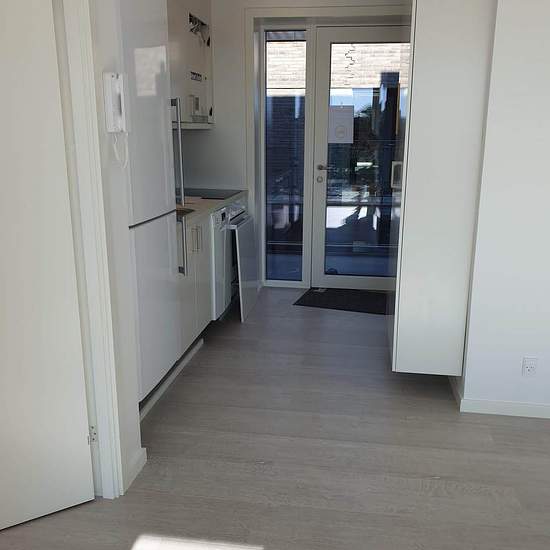 The property is located near the center of Odder and was newly constructed in July 2019. The building has an elevator. The kitchen is from HTH with all major appliances. The bathroom has underfloor heating, a shower enclosure, a washing machine, a tumble dryer, and the fixtures are likewise from HTH. This apartment has a balcony and access to a large communal roof terrace. The tenancy includes a storage room. There is parking available at the property.