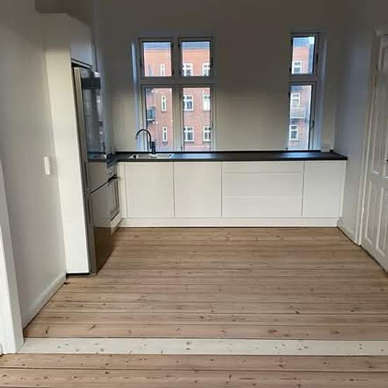 Østre Stationsvej Beautiful newly modernized 2-room apartment, 64 m2, with a central location only 500 m from the train station and the light rail right outside the door. - dishwasher - large fridge-freezer - separate room in the apartment with installation for your own washing machine/dryer - ready to move in - 6,400 per month excl. advance payments for heating/water - 3 months' deposit - 1 month's prepaid rent For further questions, please contact the property's administrator Domhusgaarden, Tina Beck, directly.