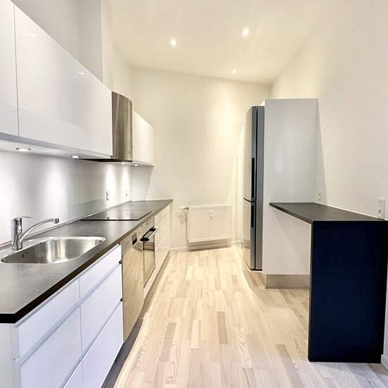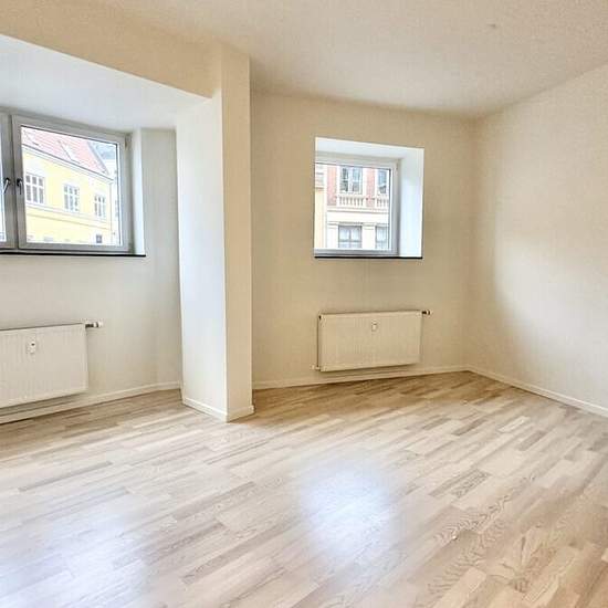 2 værelses – Brogade 1, st. mf. – Odense C På hjørnet af Brogade og Nedergade udlejes lækker nyrenoveret 2 vær. lejlighed på 70 m² beliggende i stueetagen. Lejemålet har tidligere været et erhvervslejemål som nu er ombygget til en skøn moderne lejlighed. Lejligheden har adgang til stor flisebelagt entre som også fungerer som bryggers hvor der er faste skabe og vaskemaskine og tørretumbler. Der er flot flisebadeværelse med gulvvarme, væghængt toilet, bruseniche m.m. Fra bryggers/entre er der få trin til stor skøn og lys stue hvor der er plads...