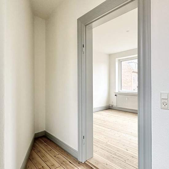 2-room — Nyborgvej 27, 2nd floor, right — Odense C At the beginning of Nyborgvej this attractive and spacious 2-room apartment of 75 m² located on the 2nd floor is for rent. The apartment has a nice newer kitchen with all major appliances, including a dishwasher. Good tiled bathroom with a shower. Large bright living room and a large bedroom. There are sanded wooden floors, an intercom, a shared laundry room and a basement storage room. Rent per month DKK 6,545.00 + heating DKK 600.00 + water DKK 400.00. Deposit DKK 19,635.00.