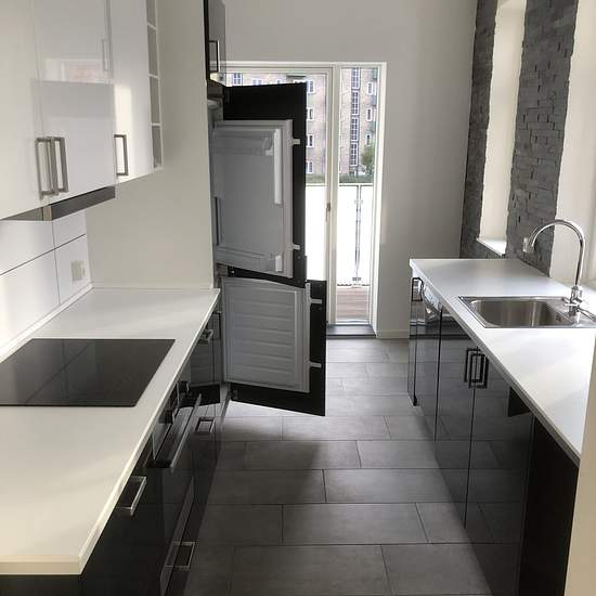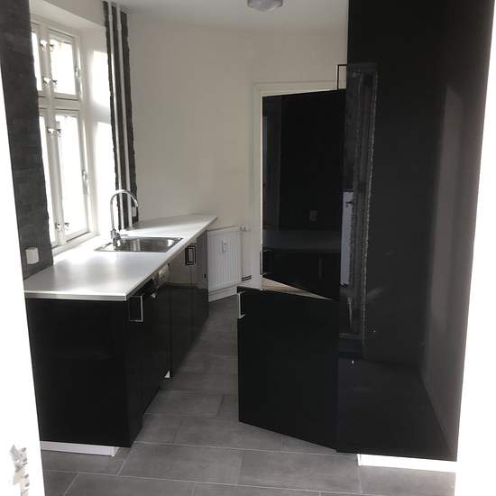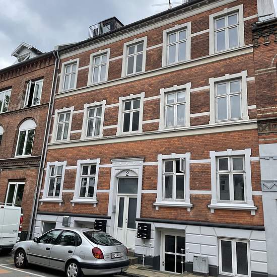 Centrally located 2-room apartment in the center of Odense at Roersvej 2. The apartment is on the 1st floor, raised above street level for added privacy. The unit comprises a small entrance hall, a spacious living room, and a hallway with a small extra dining nook/study area. From the hallway there is access to the bathroom and a New Yorker-style kitchen from 2014 with access to a south-facing balcony. The kitchen has all appliances, including a dishwasher. There is the option to use a private laundry for a fee of DKK 135 per month. The prop...