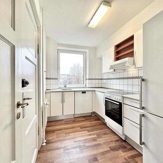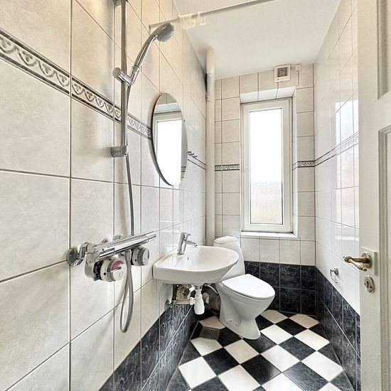 Welcome to this 2-room apartment where light meets charm. A move-in ready home with a pleasant atmosphere. The 75 m² apartment offers a large bright living room, a spacious bedroom, and a beautiful modern kitchen equipped with all modern appliances, including a dishwasher. The sleek tiled bathroom has a practical shower niche and provides good functionality. Sanded floors create a warm and inviting ambiance throughout the home. The property Here you will find a shared laundry room and intercom system, adding extra convenience. The basement...