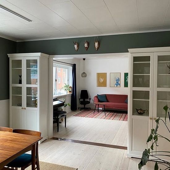 4-room apartment consisting of two en-suite living rooms, two bedrooms, and plenty of closet and storage space. Perfect for 1 person, 2 study roommates, or a couple. There is access to a large elevated south/west-facing terrace from one of the bedrooms, with a view of Odense's probably most beautiful backyard. The terrace is shared with the neighboring apartment, where a couple have just moved in. The kitchen has a dishwasher, fridge-freezer, and plenty of storage space. There is the option to be connected to an inexpensive and easy laundry ...