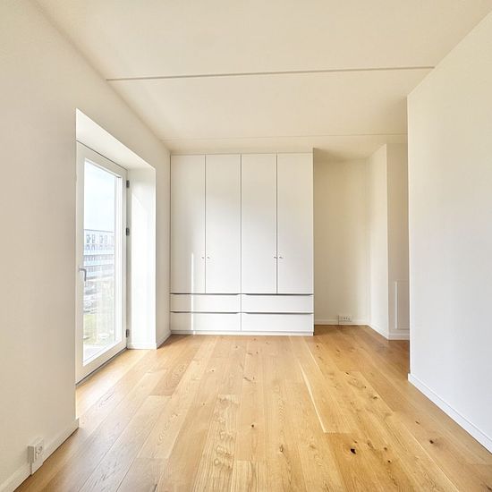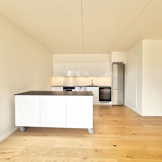 Welcome to this 2-room apartment where light and quality meet a wonderful location in Odense M. A move-in ready home with a pleasant atmosphere. The apartment features a beautiful high-gloss kitchen equipped with all appliances from Miele, including a dishwasher and a wine cooler for both red and white wine. From the open kitchen/living area, there is direct access to a lovely terrace where you can enjoy your morning coffee in the sunshine. The living room is bright and inviting, perfect for relaxing after a long day. The spacious hallway p...
