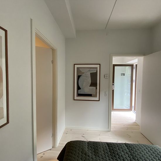 Beautiful apartment on the 2nd floor with free parking for rent in Cortex Park West. The apartment has a beautiful HTH kitchen with built-in sound unit speaker and dishwasher, large tiled bathroom with washing machine and dryer, walk-in closet connected to the bedroom, light pine plank floors and of course underfloor heating throughout the apartment. On the roof of the building you will find a lovely rooftop terrace, and in the courtyard there is bicycle parking. If you have a car, or if you have guests with a car, there is naturally also fr...