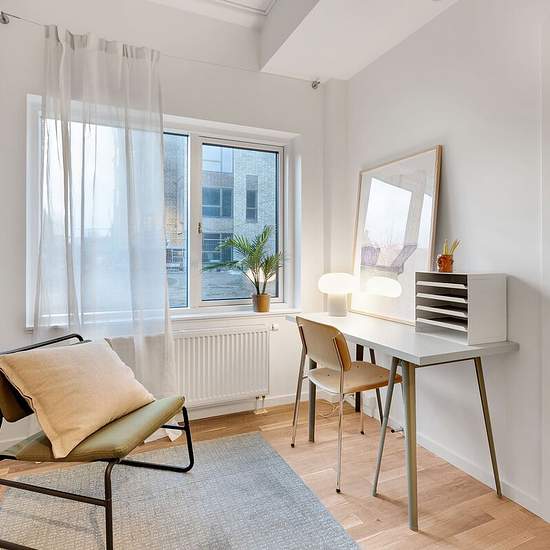 2-room apartment, 50 m² Gartnerbyen, 5200 Odense, Odense V Now you can finally get your hands on this highly attractive apartment, right in the heart of the popular Gartnerbyen. Here you get a well-laid-out home with a good, compact kitchen, a large, spacious bathroom and a French balcony. The apartment is easy to furnish, and there is room for a double bed, a sofa and a dining area – only your imagination sets the limits. All residents have access to outdoor communal areas as well as a large and lovely common room with: Large shared kitchen...