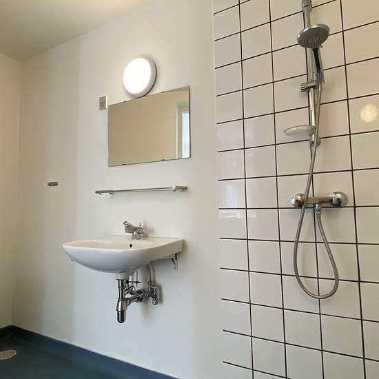 Centrally located and renovated corner property. Located close to the train station and the town center, with a wide range of shopping options. The property has a communal courtyard, which also provides access to a large shared courtyard area in the neighborhood. Childcare facilities and schools within walking distance. Laundry facilities available. Door intercom system. Balconies on most units. Planed solid wood floors and stucco ceilings.