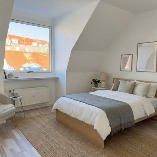 Move-in ready 2-room apartment with plenty of light and rooftop views in Randers C! Live centrally with everything within reach: several bus stops, the train station, grocery stores, a pizzeria and restaurants. Easy access to schools and good public parking options in the area – ideal for both students and commuters. Søren Møllers Gade 34, 4th floor, right-hand apartment, 8900 Randers C Well-laid-out 2-room apartment 51 m² 4th floor with plenty of daylight and views of the city's rooftops Nice kitchen with dishwasher Modern bathroom with ...