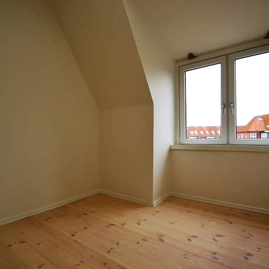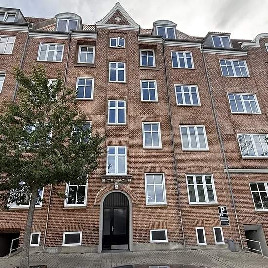 Centrally located and renovated property, close to the bus station, Værket, and within walking distance of the town centre with a wide range of shopping options. There is a large communal courtyard garden with a lawn belonging to the property. Childcare facilities and schools within walking distance. Laundry facilities are available. Planed solid wood floors and stucco ceilings.